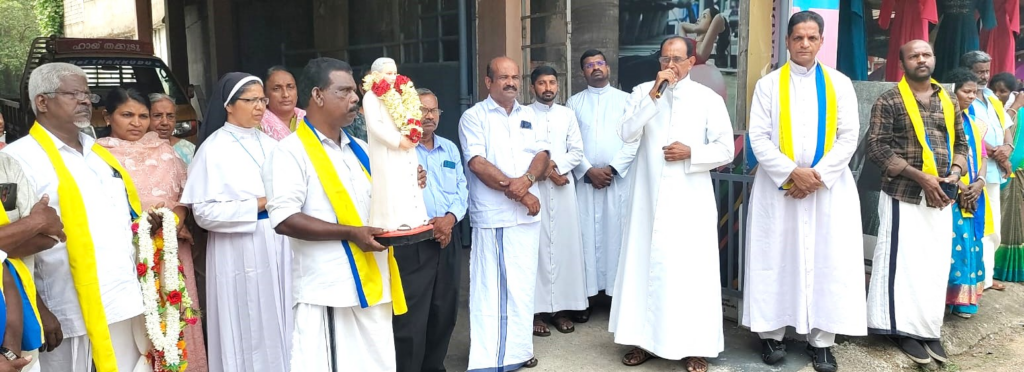 കുഞ്ഞച്ചന്റെ തിരുസ്വരൂപവുമായിട്ടാണ് വിളംബര ജാഥ പര്യടനം നടത്തിയത്. കുഞ്ഞച്ചന്റെ തിരുനാളിനോടുനുബന്ധിച്ചു പാലാ രൂപതയുടെ നേതൃത്വത്തില് നടക്കുന്ന വിളംബര ജാഥയ്ക്കു തെരഞ്ഞെടുക്കപെട്ട 27 ഇടവക കേന്ദ്രങ്ങളിലാണ് സ്വീകരണമൊരുക്കിയത്. പാലാ ബിഷപ്പ് ഹൗസില് നിന്നും തിങ്കളാഴ്ച്ച രാവിലെ ആരംഭിച്ച വിളബംര ജാഥ ബിഷപ്പ് മാര് ജോസഫ് കല്ലറങ്ങാട്ട് ഉദ്ഘാടനം ചെയ്തു. വിവിധ കേന്ദ്രങ്ങളിലെ സ്വീകരണം ഏറ്റു വാങ്ങിയ ശേഷം രാമപുരത്ത് കുഞ്ഞച്ചന്റെ കബറിട തീര്ത്ഥാടന കേന്ദ്രത്തില് ജാഥ സമാപിച്ചു. ഡിസിഎംഎസ് പ്രസിഡന്റ് ബിനോയി ജോണ് അമ്പലക്കട്ടേല്, സെക്രട്ടറി ബിന്ദു ആന്റണി എന്നിവരാണ് ജാഥയ്ക്കു നേതൃത്വം നല്കിയത്.