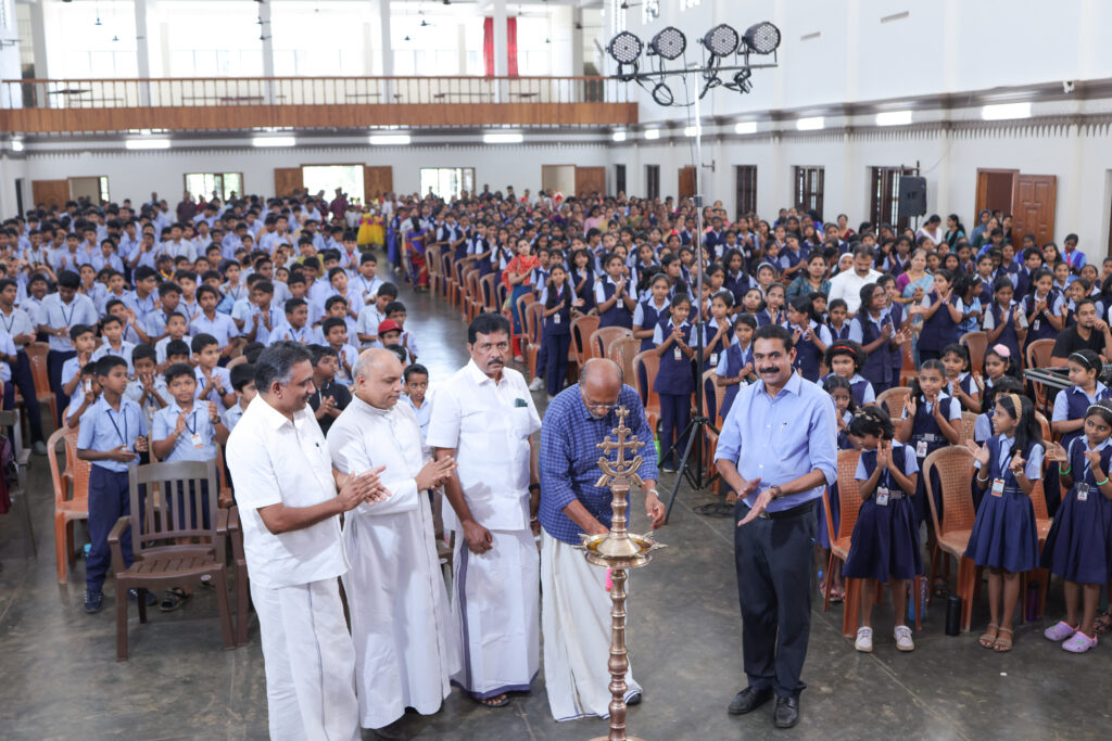 . ‘ ജീവിതത്തിലെ തൻ്റെ കുട്ടിയുടെ വാസനകൾ തിരിച്ചറിയാതെ പോയ ഒരു പിതാവിൻറെ അവനെ താൻ വരയ്ക്കുന്ന വരയിലൂടെ നയിക്കണം എന്ന് ആഗ്രഹിക്കുന്ന ഒരു പിതാവിൻ്റെ എല്ലാം തിരിച്ചറിഞ്ഞപ്പോൾ സമയം അതിക്രമിച്ചു കഴിഞ്ഞ ഒരു മനുഷ്യൻ്റെ കഥ പറയുന്ന സ്പടികം ഇന്നും സാധാരണക്കാരുടെ ജീവിതത്തിലെ ഹൃദയത്തുടിപ്പുകൾ പോലും ഏറ്റുപറയുന്ന ഒരു സിനിമയാണെന്ന് അദ്ദേഹം – ഓർമിപ്പിച്ചു തൻ്റെ വേദനകൾ എല്ലാം ഒരു കറുത്ത കണ്ണടയുടെ മറവിൽ ഒളിപ്പിച്ചുവെച്ചിരിക്കുന്ന ഒരു സഹൃദയനായ ഹീറോയുടെ കഥയാണ് സ്ഫടികം നമ്മുടെ മുന്നിൽ വരച്ചു കാണിക്കുന്നതെന്ന് അദ്ദേഹം പറഞ്ഞു മൂന്ന് പതിറ്റാണ്ടുകൾ പിന്നിട്ടിട്ടും സ്പടികത്തിന് തുല്യം സ്ഫടികം ‘മാത്രം – സിനിമകളിലെ നല്ല’സന്ദേശങ്ങൾ സ്വീകരിച്ച് ജീവിതം കരുപിടിപ്പിക്കാൻ എല്ലാ വിദ്യാർത്ഥികളും തയ്യാറാകണമെന്നും അദ്ദേഹം ഓർമിപ്പിച്ചു അദ്ദേഹത്തിൻറെ കഥ ‘പറഞ്ഞുകൊണ്ട് ശ്രീ ഭദ്രൻ വേദി കീഴടക്കി – മാനേജർ റവ.ഫാ.ജോസഫ് പാനാമ്പുഴ അധ്യക്ഷത വഹിച്ചു. പ്രിൻസിപ്പാൾ ഫാ.സോമി മാത്യു, പി.റ്റി.എ പ്രസിഡൻ്റ്, ശ്രീ സജു കൂടത്തിനാൽ, ഹെഡ്മാസ്റ്റർ ഷാജി ജോസ് ഫ്, സെൻ അബ്രാ’ഹം എന്നിവർ പ്രസംഗിച്ചു.