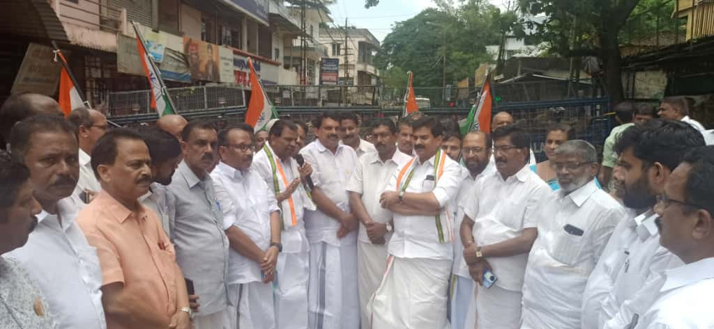 തുടര്ന്ന് ആഭ്യന്തരമന്ത്രി തിരുവഞ്ചൂര് രാധാകൃഷ്ണന് എംഎല്എ പ്രതിഷേധ സമരം ഉദ്ഘാടനം ചെയ്തു. ഡിസിസി പ്രസിഡന്റ് നാട്ടകം സുരേഷ് മുഖ്യപ്രഭാഷണം നടത്തി. കോണ്ഗ്രസ് നേതാക്കളായ സുനു ജോര്ജ്, എം.എന്. ദിവാകരന് നായര്, ബ്ലോക്ക് പ്രസിഡന്റ് ജെയിംസ് പുല്ലാപ്പള്ളി, എം.കെ. സാംബുജി, ടോമി പ്രാലടി, സുബിന് മാത്യു, ബിനോ സ്കറിയ, ശ്രീലേഖ മണിലാല്, ശരത് ശശി, എന്.മണിലാല്, നോബി മുണ്ടയ്ക്കല്, ജെറി കണിയാംപറമ്പില്, ജെയ്സണ് മണലേല്, കെ.പി. വിനോദ്, രാജു മൂപ്പനത്ത് തുടങ്ങിയവര് പ്രസംഗിച്ചു.