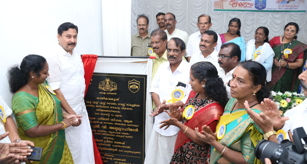 വൈക്കം തെക്കേനട ഗവൺമെന്റ് ഹയർ സെക്കൻഡറി സ്‌കൂളിൽ നിർമിക്കുന്ന സ്റ്റേഡിയത്തിന്റെ നിർമാണോദ്ഘാടനം മന്ത്രി വി. അബ്ദുറഹ്‌മാൻ നിർവഹിക്കുന്നു. സി.കെ. ആശ എം.എൽ.എ. സമീപം.