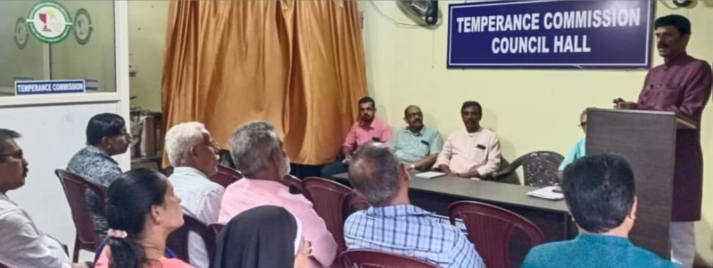 കെ.സി.ബി.സി. മദ്യവിരുദ്ധ സമിതി പ്രതിനിധി യോഗം കോട്ടയത്ത് ടെമ്പറന്‍സ് കൗണ്‍സില്‍ ഹാളില്‍ സംസ്ഥാന സെക്രട്ടറി പ്രസാദ് കുരുവിള ഉദ്ഘാടനം ചെയ്യുന്നു. ആന്റണി മാത്യു, ഷാജി അണക്കര, ജോസ്‌മോന്‍ പുഴക്കരോട്ട്, അലക്‌സ് കെ. ഇമ്മാനുവേല്‍ എന്നിവര്‍ സമീപം.