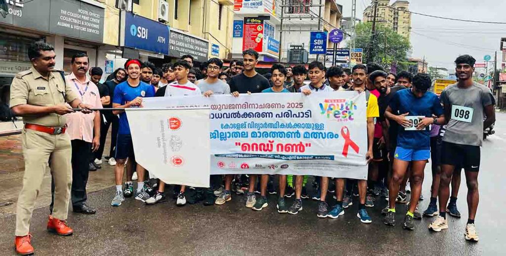 കോട്ടയം: രാജ്യാന്തര യുവജന ദിനാചരണത്തോട് അനുബന്ധിച്ച് കോളേജ് വിദ്യാർത്ഥികളിൽ എച്ച്.ഐ.വി/എയ്ഡ്സിനെക്കുറിച്ച് അവബോധം സൃഷ്ടിക്കുന്നതിനായി റെഡ് റൺ മാരത്തൺ മത്സരം നടത്തി. കനത്ത മഴയെ അവഗണിച്ചും ജില്ലയിലെ വിവിധ കോളേജുകളിൽ നിന്നായി എൺപതിൽ അധികം വിദ്യാർത്ഥികൾ മാരത്തണിൽ പങ്കെടുത്തു.
