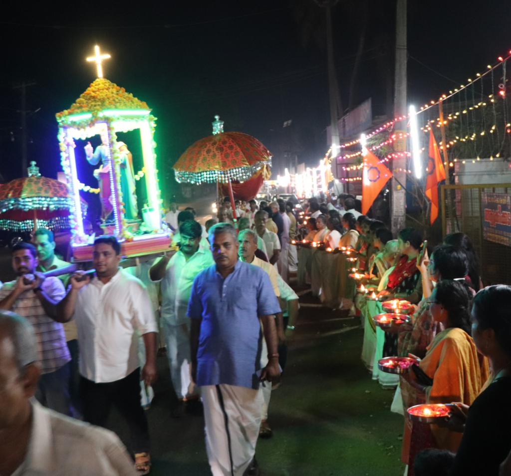 താലപ്പൊലിയുടെയും വിവിധ വാദ്യമേളങ്ങളുടെയും അകമ്പടിയോടെയാണ് ക്ഷേത്രമുറ്റത്ത് പ്രദക്ഷിണത്തെ സ്വീകരിക്കുക. നൂറ്റാണ്ടുകളായുള്ള നാടിൻ്റെ മതസൗഹാർദ്ദ പാരമ്പര്യം കാത്തുസൂക്ഷിക്കുന്നതിൻ്റെ ഭാഗമായാണ് ഇത്തരമൊരു ചടങ്ങ് സംഘടിപ്പിക്കുന്നതെന്ന് ക്ഷേത്രക്കമ്മിറ്റി ഭാരവാഹികൾ അറിയിച്ചു. ആയിരക്കണക്കിന് വിശ്വാസികൾ പങ്കെടുക്കുന്ന ഈ പ്രദക്ഷിണം തിരുനാളിൻ്റെ പ്രധാന ആകർഷണങ്ങളിൽ ഒന്നാണ്.