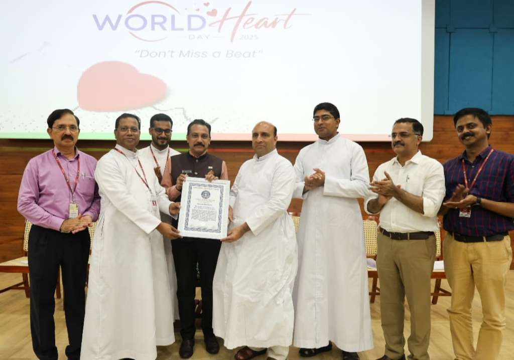 പാലാ . ലോക ഹൃദയദിനത്തിൽ 1000 പേർക്ക് ബേസിക് ലൈഫ് സപ്പോർട്ട് പരിശീലനം നൽകിയതിന് മാർ സ്ലീവാ മെഡിസിറ്റിക്ക് യൂണിവേഴ്സൽ വേൾഡ് റിക്കോർഡ് ഫോറത്തിന്റെ ദേശീയ ആദരവ്. ചൂണ്ടച്ചേരി സെന്റ് ജോസഫ് കോളജ് ഓഫ് എൻജിനീയറിംഗ് ആൻഡ് ടെക്നോളജിയിൽ നടന്ന ചടങ്ങിൽ മാർ സ്ലീവാ മെഡിസിറ്റി മാനേജിംഗ് ഡയറക്ടർ മോൺ.ഡോ.ജോസഫ് കണിയോടിക്കൽ, യൂണിവേഴ്സൽ റിക്കോർഡ് ഫോറം ഇന്റർനാഷണൽ ജൂറി ഗിന്നസ് സുനിൽ ജോസഫിൽ നിന്ന് ദേശീയ ആദരവ് ഏറ്റുവാങ്ങി. പ്രായോഗിക അറിവുകളിലൂടെ ജീവൻരക്ഷ എങ്ങനെ സാധിക്കാം എന്ന തിരിച്ചറിവ് പകർന്നാണ് മാർ സ്ലീവാ മെഡിസിറ്റിയുടെ നേതൃത്വത്തിൽ മെഗാ ബി.എൽ.എസ് പരിശീലനം നൽകിയത്.