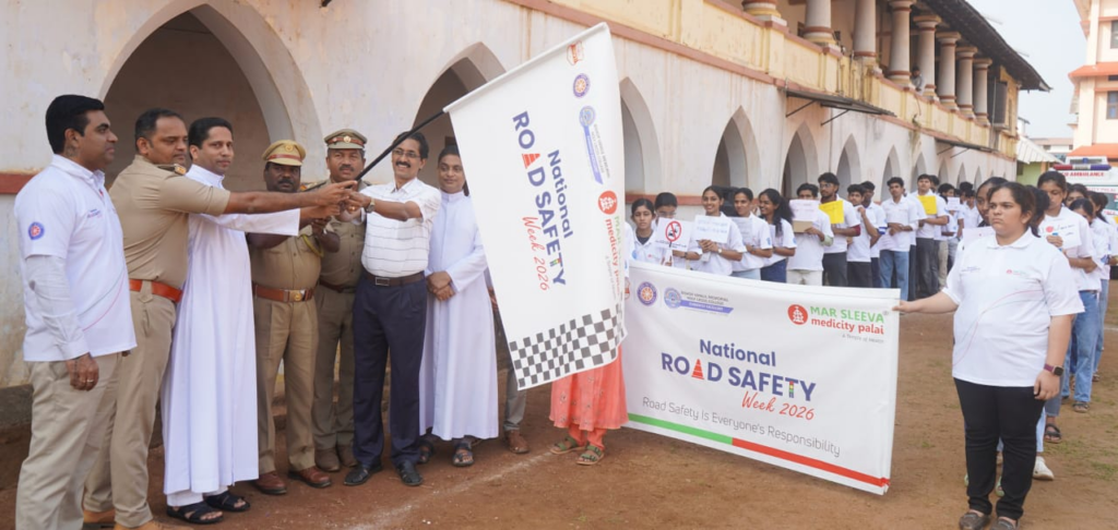 പാലാ . റോഡ് സുരക്ഷ എല്ലാവരുടെയും ഉത്തരവാദിത്തമാണെന്ന സന്ദേശവുമായി മാർ സ്ലീവാ മെഡിസിറ്റിയുടെ നേതൃത്വത്തിൽ ചേർപ്പുങ്കൽ ബി.വി.എം കോളജ് എൻ.എസ്.എസ് യൂണിറ്റ്, മോട്ടോർ വാഹനവകുപ്പ് എന്നിവയുമായി സഹകരിച്ച് ദേശീയ റോഡ് സുരക്ഷവാരാചരണ പരിപാടി സംഘടിപ്പിച്ചു. പാലാ സെന്റ് തോമസ് ഹയർസെക്കണ്ടറി സ്കൂളിൽ നിന്ന് കൊട്ടാരമറ്റം ബസ് സ്റ്റാൻഡിലേക്ക് ബോധവൽക്കരണവുമായി വാക്കത്തോൺ നടത്തി.
