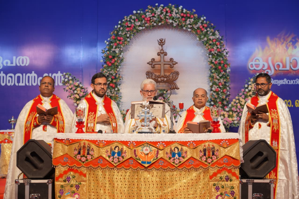 പാലാ. അഭിഷേകത്തിൻ്റെ അനന്തമായ തിരുശേഷിപ്പുകളുമായി പുതിയൊരു ആത്മീയ യാത്രയിലേക്ക് വിശ്വാസികളെ ആനയിച്ച 43 മത് പാലാ രൂപത ബൈബിൾ കൺവെൻഷൻ – കൃപാഭിഷേകത്തിന് – പാലാ സെൻ്റ് തോമസ് കോളേജ് ഗ്രൗണ്ടിൽ ഭക്തിനിർഭരമായ സമാപനം. ഡിസംബർ 19 മുതൽ 23 വരെ സായാഹ്ന കൺവെൻഷനായി ക്രമീകരിച്ച കൺവെൻഷൻ എല്ലാ ദിവസവും ജനപങ്കാളിത്തം കൊണ്ട് ശ്രദ്ധേയമായിരുന്നു.